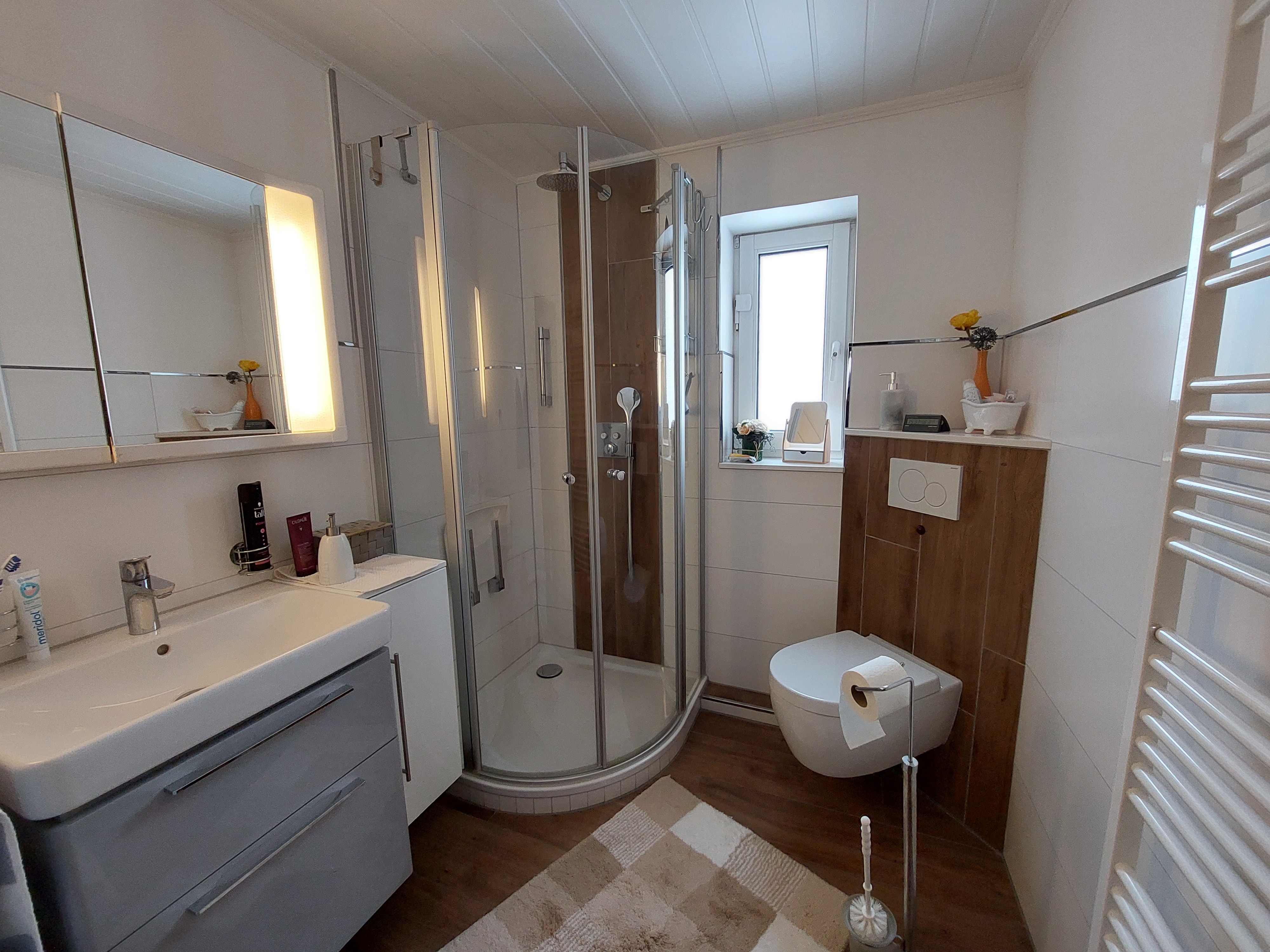 - Ausstattung des Bades Dusche Fenster