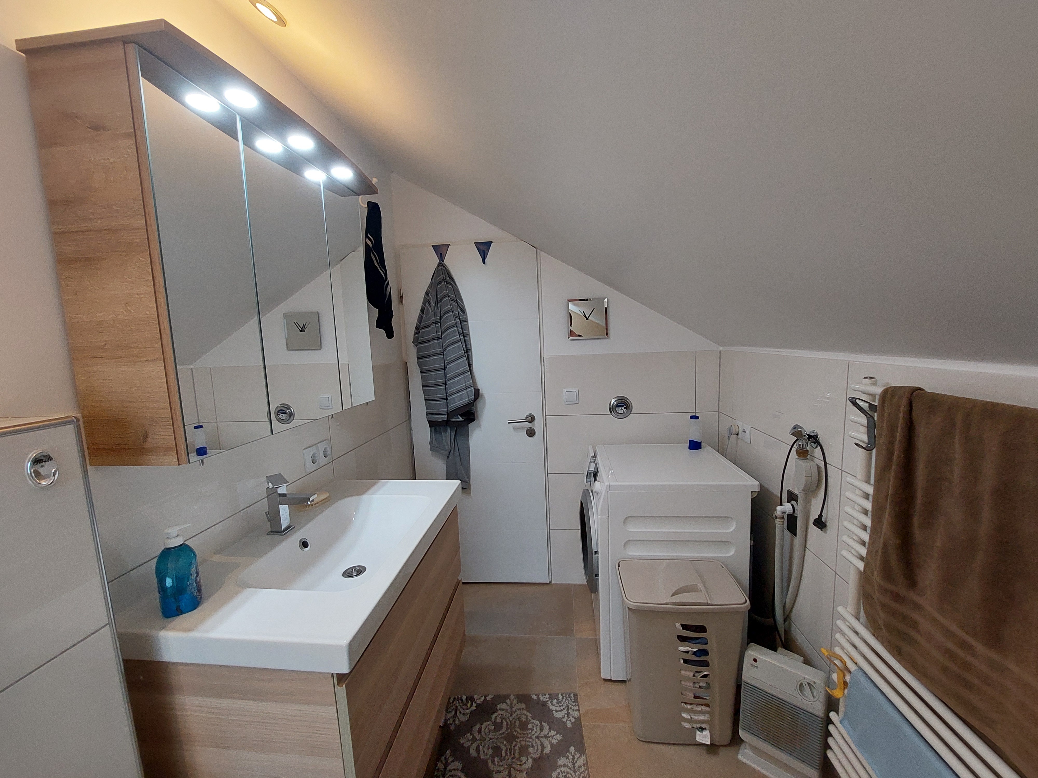 Das Bad mit Wanne wurde bereits saniert, auch die Küche ist zeitlos und wurde mit modernen Elementen ausgestattet.